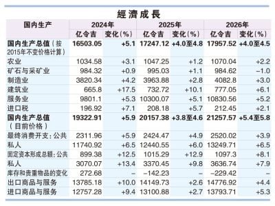 《经济报告书》披露,在5大领域方面,2026年料由服务及制造领域扛起增长“火车头”角色,而矿业领域料持续萎缩。