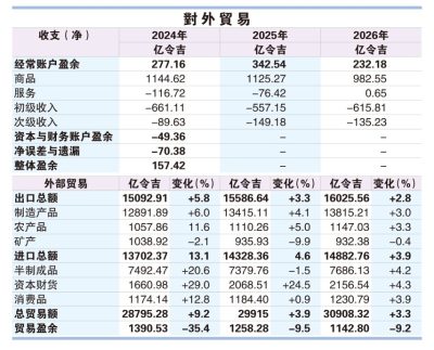 出口方面,在半导体及人工智能(AI)应用需求攀升,电子与电器领域稳定扩张,有助推动2026年整体出口升高2.8%,反观整体进口有望升高3.9%,反映我国主要经济领域和策略投资活动的稳定表现。
