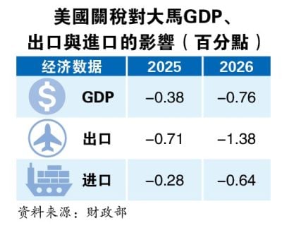 财政部预计,2026年大马经济增长将减少0.76个百分点,其中直接影响为0.15个百分点,间接影响为0.61个百分点,商品与服务出口预计减少1.38个百分点,商品与服务进口预计减少0.64个百分点。