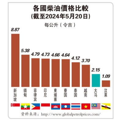 根据《财政报告书》,大马补贴柴油价格(截至2024年5月20日)为区域第二低,显著的价差导致补贴柴油遭到滥用,被运用在非法商业活动和边境走私,造成严重的经济失衡和财政成本。在2019至2023年之间,注册的柴油车辆仅增长15%,但补贴柴油消耗量却大增73%,导致政府补贴增加近10倍,反映出政策框架改革的重要性。