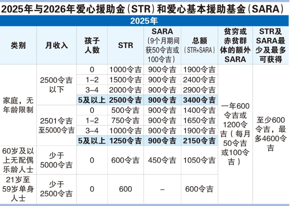 2026财政预算案 | 部分STR现金援助 改用SARA方式发放